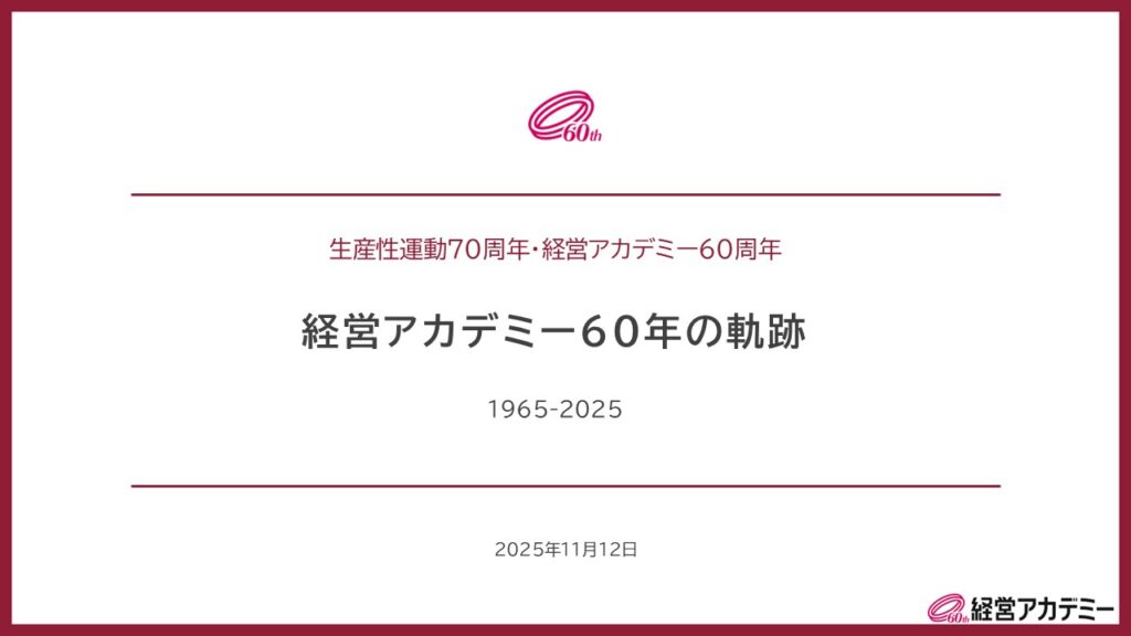 経営アカデミーでは、創設以来60年にわたり、多彩なコース展開と受講者実績を重ね、日本の経営人材育成を支えてきました。本資料では、受講者数の推移、コースの広がり、近年の取り組みなど、経営アカデミーの歩みをコンパクトにまとめています。